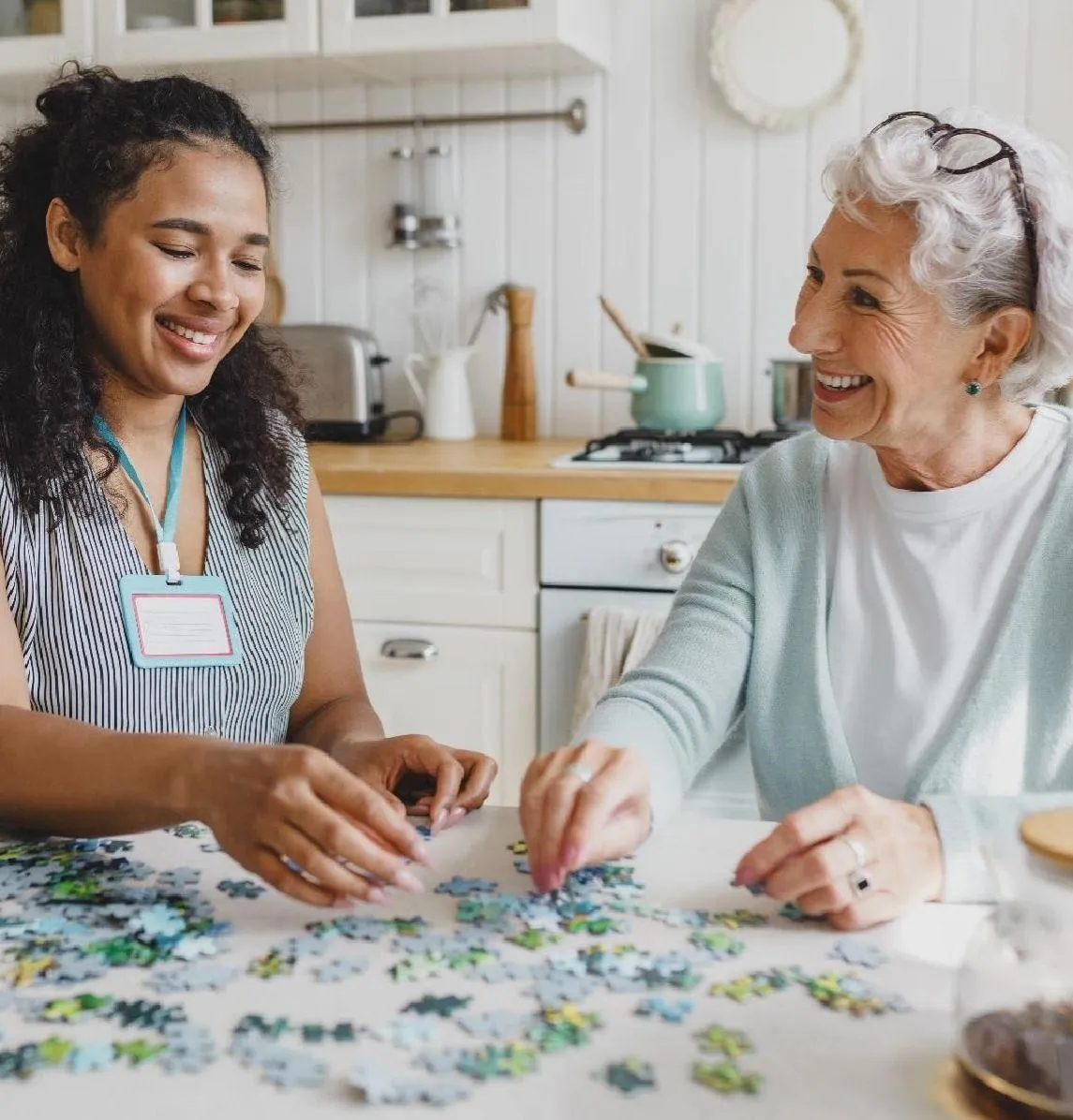 Discussing life experiences, past and present, to enhance memory and connection.